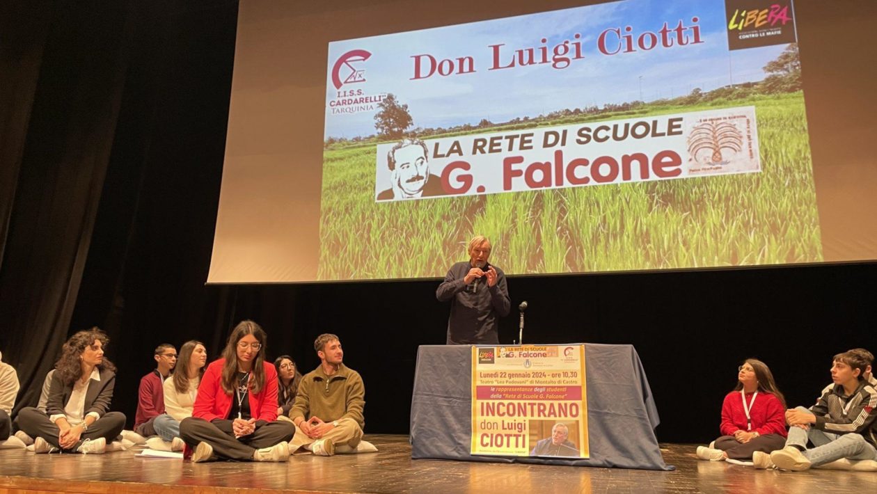 Don Ciotti ai ragazzi ha raccontato la sua esperienza che l’ha portato a creare negli anni una grande rete di legalità, volta a promuovere la partecipazione attiva e costruire una società giusta, democratica e solidale. Sul palcoscenico del teatro Lea Padovani i giovani delle scuole di Montalto di Castro e della Tuscia, che hanno espresso il loro ringraziamento per questa importante testimonianza. Presenti, con insegnanti e studenti, anche le forze dell’ordine al quale Don Ciotti ha rivolto un particolare elogio per il loro costante e difficile lavoro in questa lotta contro la criminalità organizzata.