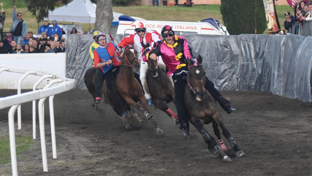 BOMARZO – Nuova vittoria per il fantino Alessandro Cersosimo in sella al cavallo Unamore che lo scorso anno aveva trionfato per i colori di Borgo e quest’anno con quelli del rione Madonna del Piano. Dopo una “mossa” durata oltre un’ora, il rione Dentro (Francesco Caria-Diavolo Saserra) è stato messo di rincorsa al posto di Poggio (Antonio Mula-Denise Beauty). Madonna del Piano, seguita da Croci (Andrea Sanna-Daisa) dopo la partenza ha mantenuto testa ai tre giri di corsa e ha vinto questa edizione. Secondo classificato il rione Croci con il cavallo Daisa montato dal fantino Andrea Sanna, terzo, il rione Poggio con il cavallo Denise Beauty, montato dal fantino A. Mula.