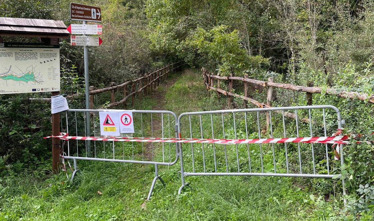 “Attenzione – fanno sapere dall’organizzazione del Cammino -. Ttratto interrotto per frana, nella tappa numero 7, poco dopo Civitella Cesi in direzione Monte Romano. Deviazione: da Civitella Cesi si seguono le indicazioni del sentiero 103 per Monte Romano. Arrivati sulla SP 42 su supera il punte sul fiume Vesca e, invece di svoltare a sinistra (qui inizia il tratto interrotto) si prosegue dritto sempre sulla SP 42 per circa 1,5 chilometri per poi svoltare a sinistra sul sentiero Cai numero 130 che si ricongiunge dopo circa 1 chilometro al Cammino Tuscia 103 poco dopo la Necropoli di San Giovenale”.