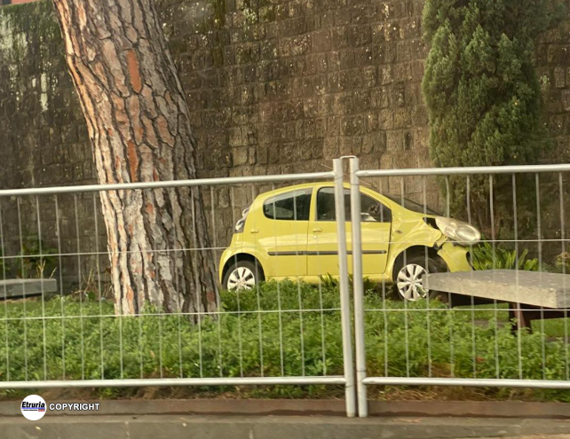 Un’auto di piccola cilindrata, dopo aver sbandato, è finita dentro al da poco inaugurato parco Melvin Jones su viale Raniero Capocci, distruggendo le transenne (ancora presente e mai rimossa per impedire ai cinghiali, e ai cittadini, di entrare) e parte del parchetto.