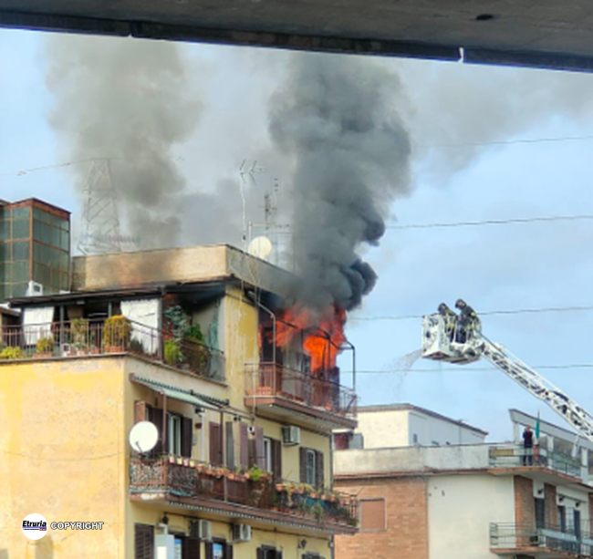 ROMA – Un grave incendio è divampato in un appartamento all’ultimo piano di una palazzina in via Flaminia Nuova, accanto alla stazione di Labaro dove ci sarebbe almeno una vittima confermata.