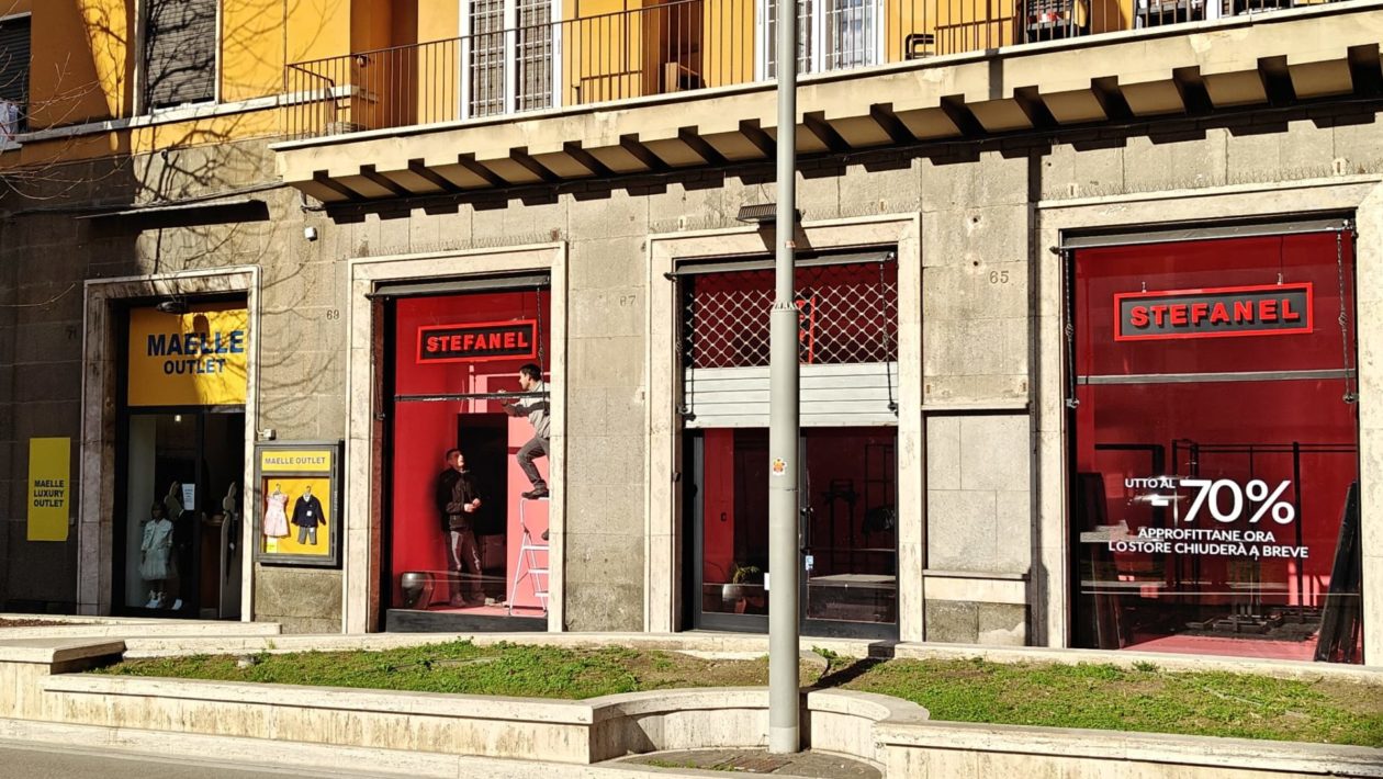 Si tratta del negozio di abbigliamento Stefanel, mentre nel vicino Maelle grande svendita per cambio di locali.
