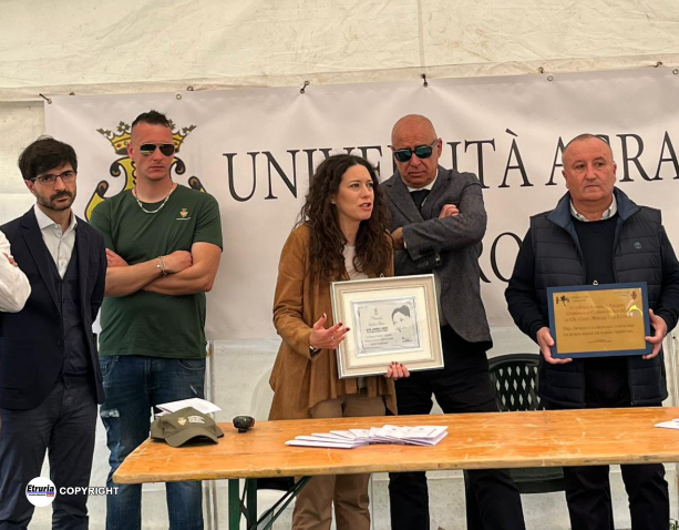 TARQUINIA – “È stato un grande onore oggi ricevere il premio del 1* Memorial: Valentina Paterna da parte del Presidente Alberto Riglietti e dell’intero consiglio dell’Università Agraria durante l’inaugurazione della tradizionale Festa della Merca a Tarquinia.