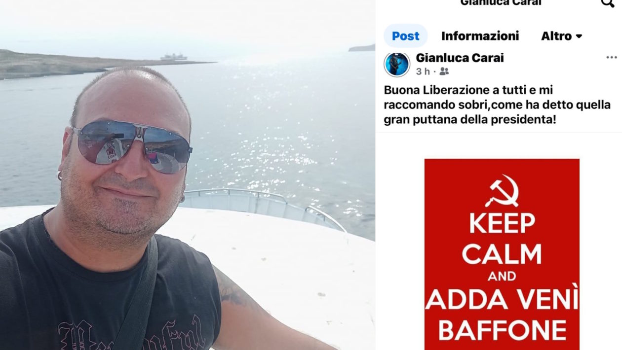 In occasione dell’80º anniversario della Liberazione, Carai ha scelto di celebrare la ricorrenza non con un pensiero di unità o memoria storica, ma con un indegno post sul proprio profilo Facebook in cui ha rivolto un insulto sessista gravissimo alla Presidente del Consiglio, Giorgia Meloni, definendola pubblicamente una “gran puttana“.