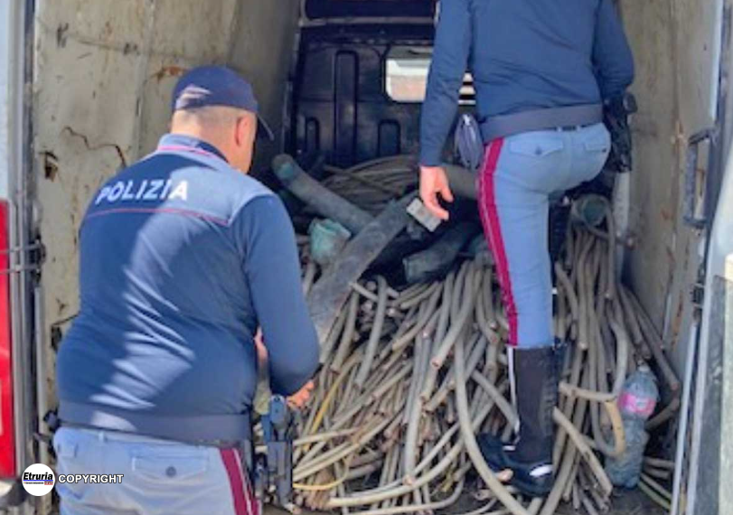 Il veicolo, un Iveco da 35 quintali, è subito apparso sospetto agli agenti della Polizia Stradale di Orvieto per via dell’evidente sovraccarico. Una volta raggiunto, i poliziotti hanno ispezionato il mezzo scoprendo all’interno circa 33 quintali di cavi di rame tranciati, ancora ricoperti dalle guaine in gomma, e alcune grondaie.