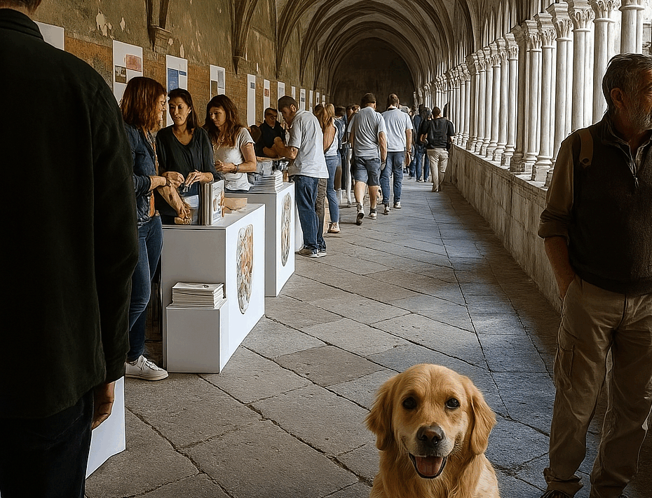 Mentre dall’organizzazione fanno sapere di aver già riflettuto sul fatto e che “per il prossimo anno prevederanno un’area apposita per i cani” per la manifestazione che quest’anno ha attirato migliaia di visitatori con oltre 400 operatori nazionali e internazionali del settore Food & Beverage e 70 espositori presenti al Salone che hanno fatto gustare i sapori del Lazio tra show cooking, laboratori e seminari d’approfondimento. (immagine creata con IA).