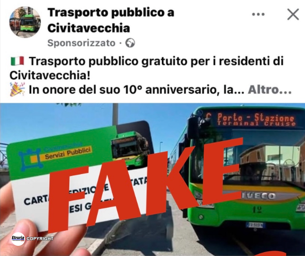 “Stanno circolando in rete sul social network Facebook post che promuovono contenuti falsi in riferimento a promozioni sul servizio di Trasporto Pubblico, sfruttando l’immagine della Civitavecchia Servizi Pubblici srl – scrive la vera società suoi suoi canali – Si tratta di una forma di frode attuata utilizzando l’immagine dei nostri autobus di linea ed il nostro logo. Civitavecchia Servizi Pubblici srl invita tutti gli utenti del TPL a diffidare da questo genere di contenuti ed a verificare sempre le fonti delle informazioni. Per le comunicazioni ufficiali fare riferimento alle pagine web ufficiali della Civitavecchia Servizi Pubblici Srl che su Facebook sono “CSP Informa” e Civitavecchia Servizi Pubblici Srl, mentre su Instagram è Csp_srl. Per tutte le comunicazioni inerenti biglietti e abbonamenti al Trasporto Pubblico e, più in generale, sui servizi gestiti dalla nostra Azienda, è possibile anche visitare il sito internet ufficiale di CSP Srl al seguente indirizzo: www.civitavecchiaservizipubblici.it”.