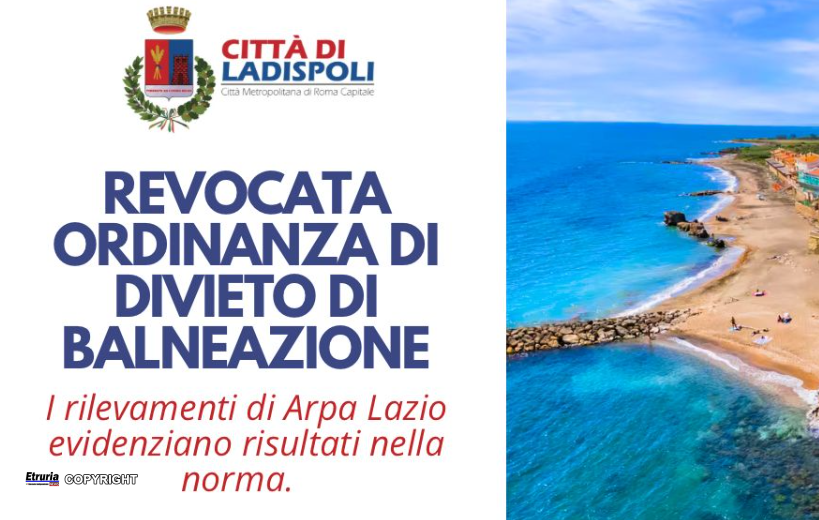 LADISPOLI – Buone notizie per residenti e turisti: è stato revocato il divieto temporaneo di balneazione nel tratto di mare in corrispondenza del punto di prelievo n.52 (250 metri a sinistra del Fosso Vaccina).
