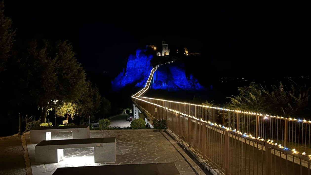 BAGNOREGIO – Seicento metri di luci illumineranno il cammino di chi visiterà Civita di Bagnoregio, città che non muore e continua a sorprenderci e farci innamorare. Da qualche giorno e fino al 6 gennaio, il ponte sarà attraversato da tantissime luci e la rupe abbandonerà il suo grigiore per passare dal blu, al verde e al rosso, con il calare della sera.
