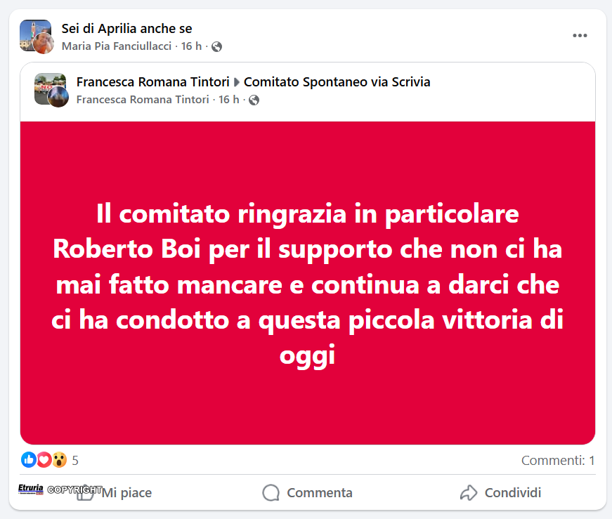 Colpisce l’euforia di alcuni “volti noti” che oggi si intestano la vittoria del popolo. In testa Roberto Boi, consigliere ed ex assessore, che sui social ringrazia i comitati e arringa il paese. Ma una domanda è dovuta: è credibile che il testimonial della “comunità che si rispetta” sia proprio chi ha governato in amministrazioni finite sotto indagini pesanti della DDA, con l’arresto del sindaco Lanfranco Principi e la città sciolta per mafia e messa in mano al commissario?