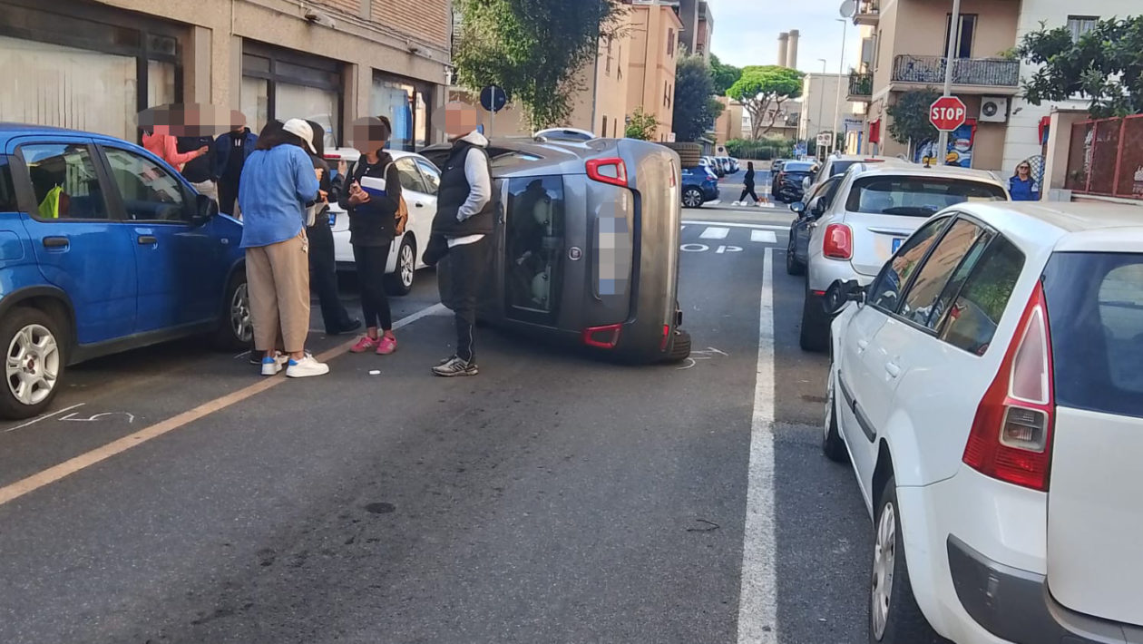 Civitavecchia – Auto cappotta in viale Etruria (FOTO)