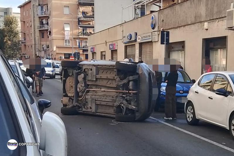 Intorno alle 16:45, per cause in corso di accertamento, un’utilitaria che stava percorrendo viale Etruria si è cappottata.