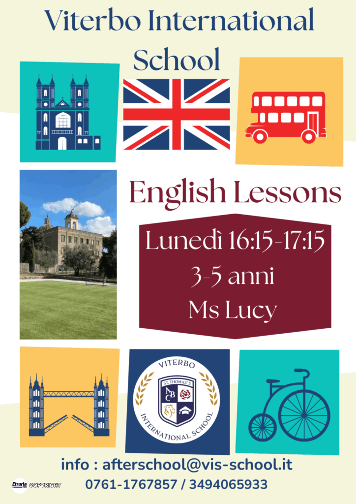 VITERBO – La Viterbo International School presenta il Mini English Club, un corso di inglese pensato per i più piccoli. Dedicato ai bambini dai 3 ai 5 anni, il corso si svolgerà ogni lunedì dalle 16:15 alle 17:15, dal 3 novembre 2025 al 25 maggio 2026, per un totale di 23 lezioni.