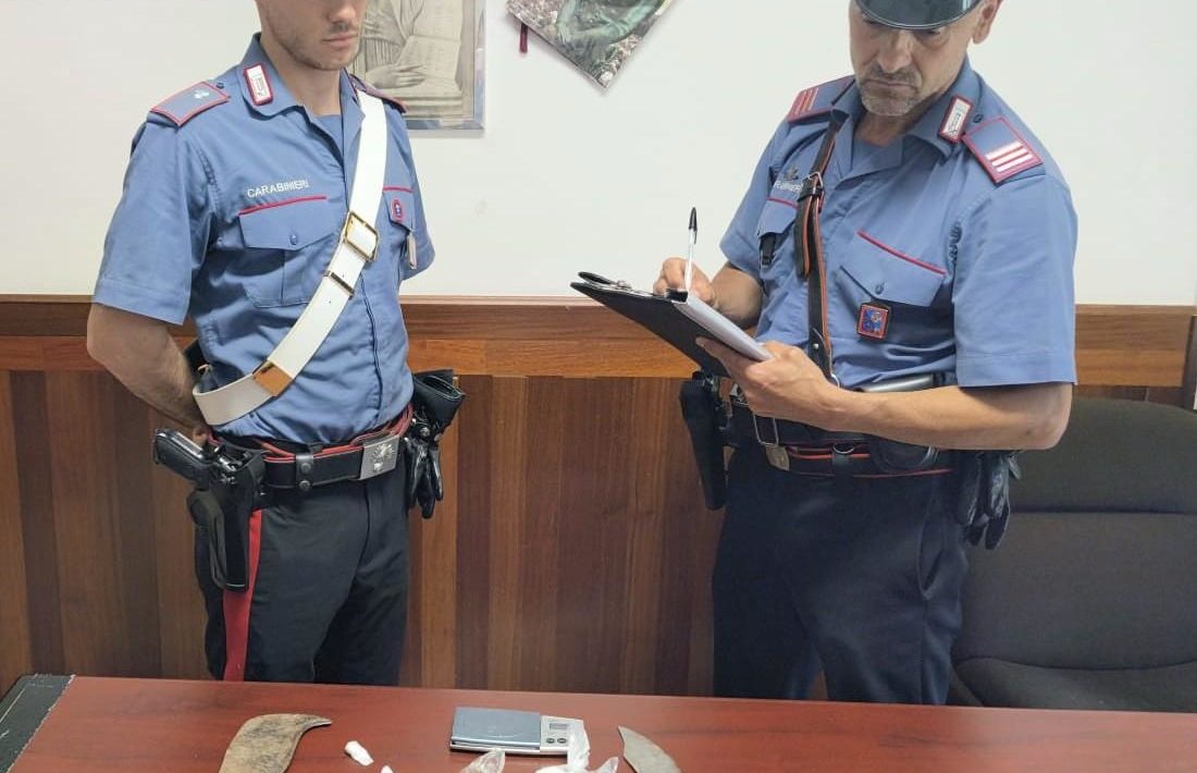 Machete, cocaina, hashish e altre “prove” sono state immediatamente sequestrate