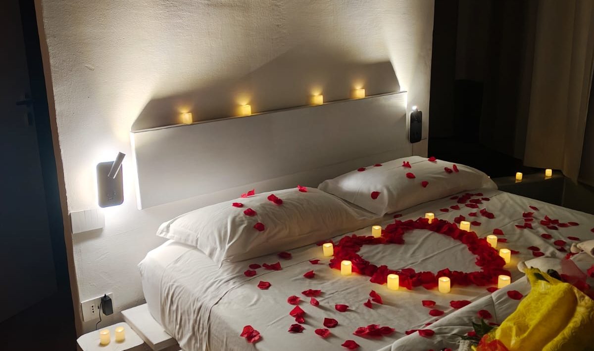 Subito ci siamo messi a disposizione ed abbiamo dato tutto il supporto necessario perché la sorpresa avesse la magia meritata. Marco ha riempito la stanza di fiori e candele, ha creato un’atmosfera unica e accogliente, da togliere il respiro; la nostra stanza, le nove finestre sui tetti di Viterbo, la grande vasca con la cromoterapia al fianco del letto hanno fatto il resto”.