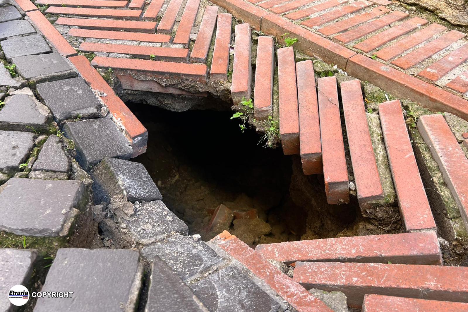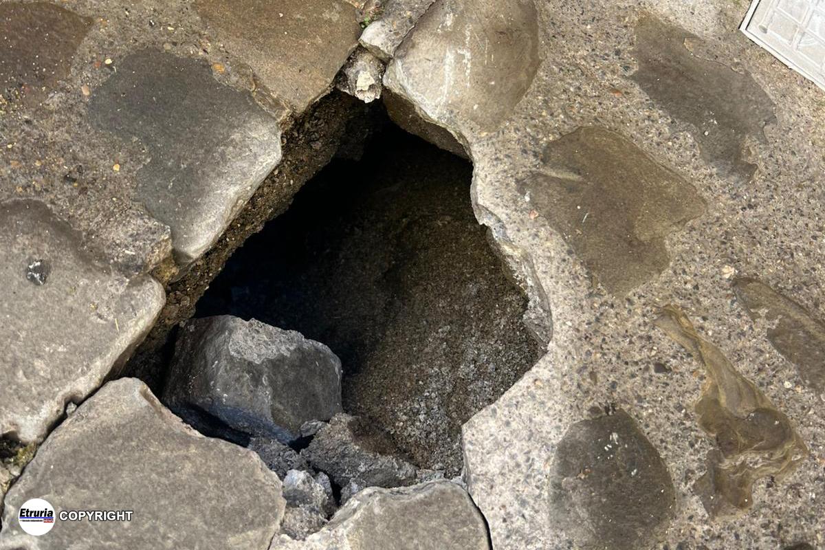 Tra sabato primo e domenica 2 novembre, in vicolo del Forno e in via dell’Archetto, si sono aperte due grosse voragini nel terreno. La prima, particolarmente ampia, rappresenta un serio pericolo sia per i pedoni che per i veicoli.