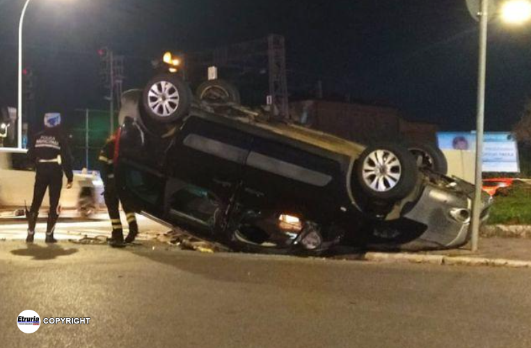 Grosseto – Schianto nella tarda serata, auto cappotta in città