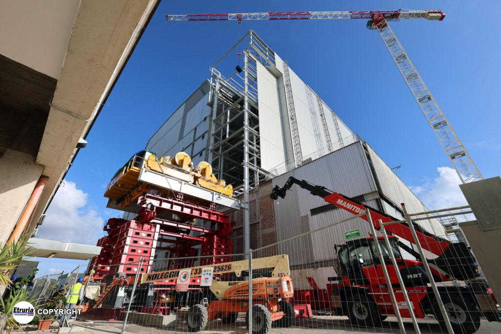 L’operazione ha previsto l’utilizzo di 240 “cassette” posizionate in modo verticale partendo dalle 4 basi dove erano posizionati i martinetti. Il sollevamento è stato manovrato da personale specializzato, che ha lavorato in turni in regime continuativo h24.