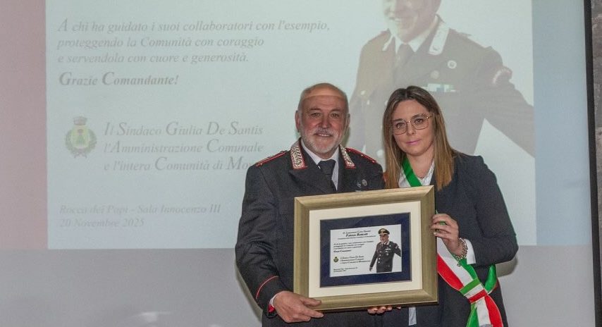 A consegnarle una targa a nome del Comune la sindaca Giulia De Santis: “A chi ha guidato – si legge nella stessa – i suoi collaboratori con l’esempio. Proteggendo la Comunità con coraggio e servendola con cuore e generosità”.