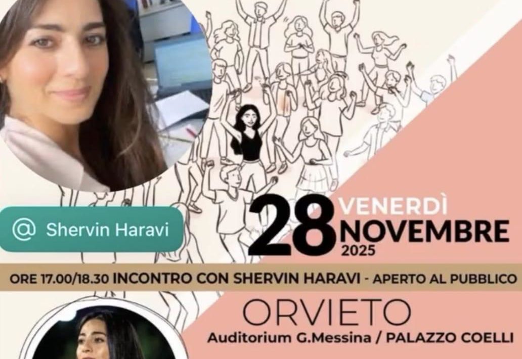 ORVIETO – Venerdì 28 novembre, alle ore 17:00, Palazzo Coeli di Orvieto ospiterà Shervin Haravi, attivista per i diritti umani e voce delle mobilitazioni giovanili e femminili in Iran. L’incontro pubblico, dal titolo “Oltre il velo – La trasformazione culturale in Iran”, sarà un’occasione per conoscere da vicino la situazione nel Paese dei genitori di Shervin e riflettere sul significato universale della lotta per libertà, dignità e diritti.