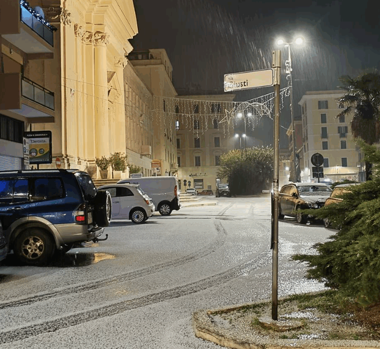Stamattina all’alba ogni via è stata ricoperta da una fortissima grandinata che ha imbiancato la città del litorale
