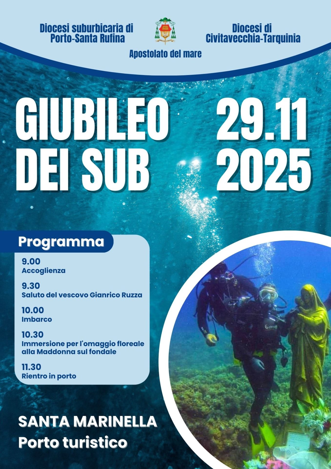 È quella organizzata dalle diocesi di Porto-Santa Rufina e di Civitavecchia-Tarquinia con il Giubileo dei sub, che si terrà il 29 novembre 2025 dalle 9 al Porto turistico di Santa Marinella.
