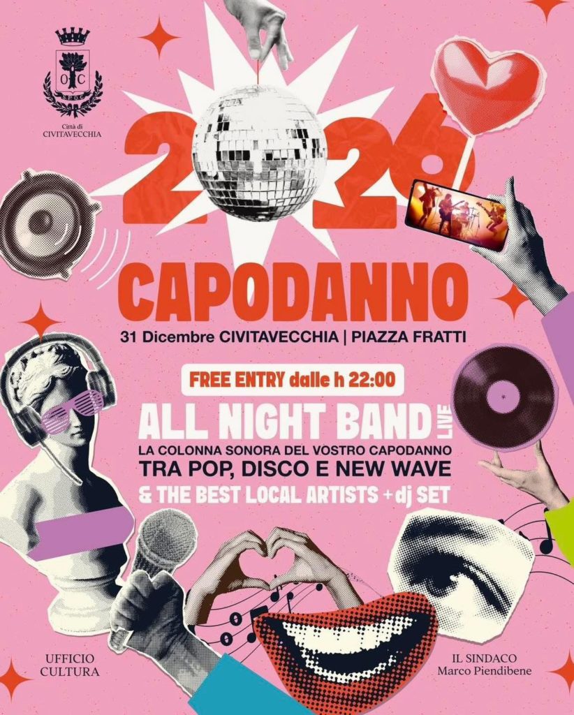 Sul palco si esibirà la All Night Band, con uno spettacolo pensato per accompagnare il pubblico verso il nuovo anno attraverso un viaggio musicale tra Pop, Disco e New Wave. La serata sarà arricchita dalla partecipazione di artisti locali e proseguirà dopo la mezzanotte con un DJ set, per continuare a festeggiare in un clima di condivisione e divertimento.