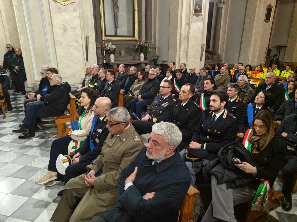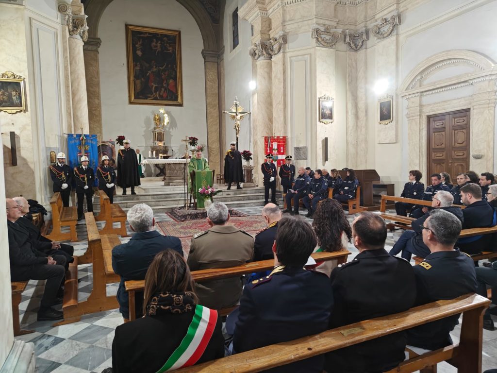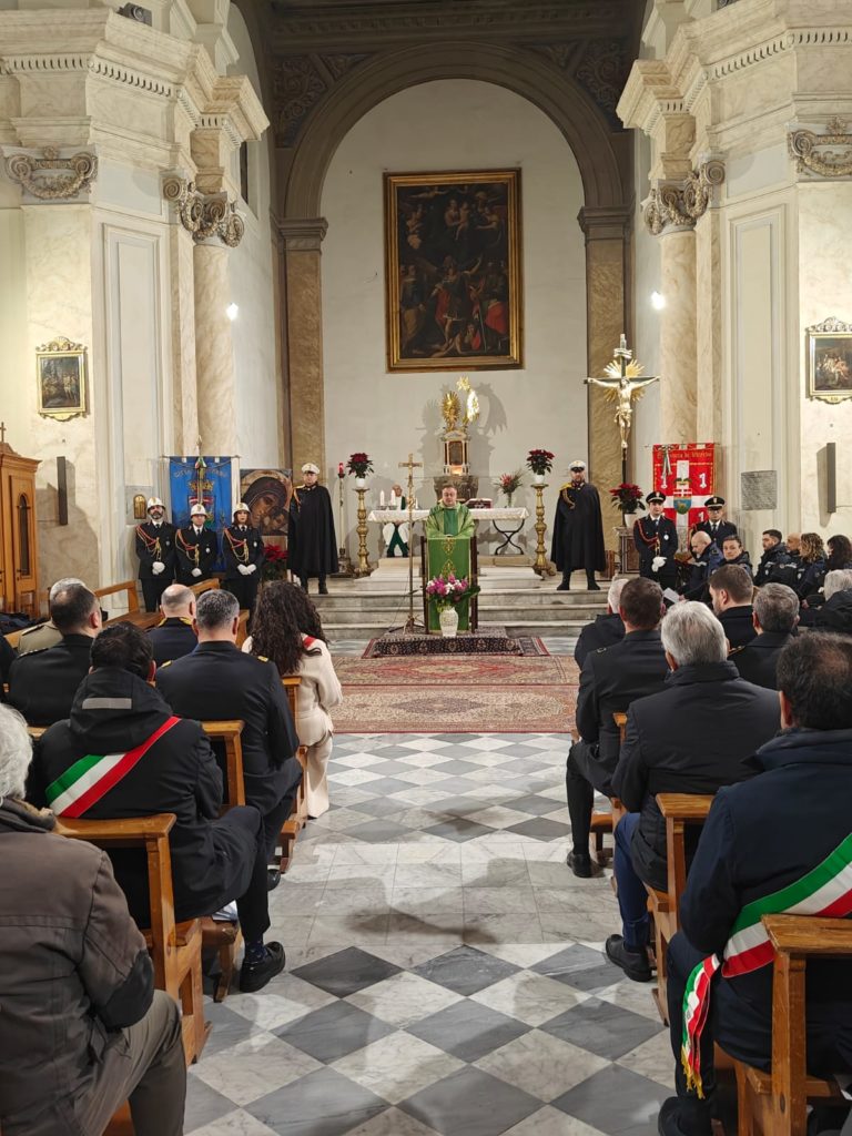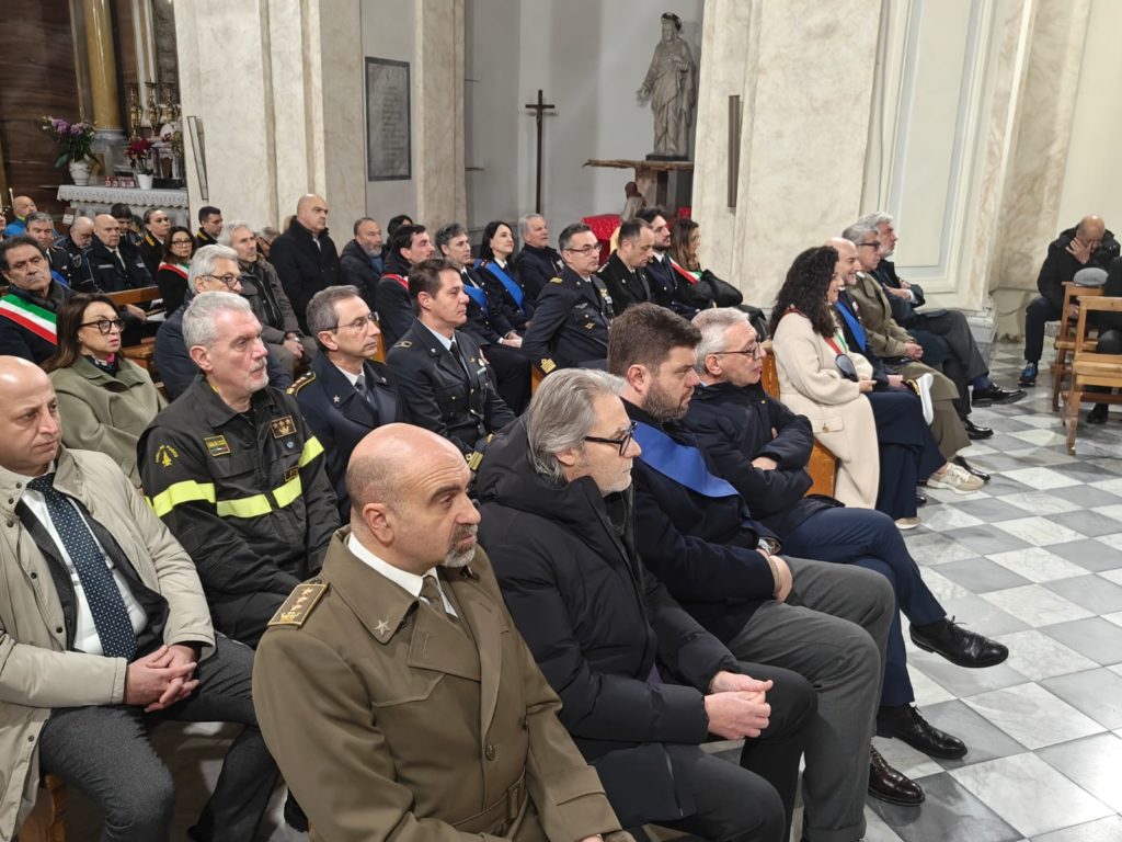 La funzione religiosa si è svolta questa mattina nella chiesa di Sant’Angelo in Spatha, in piazza del Comune, e ha visto la partecipazione di numerose autorità civili e militari. Presenti, tra gli altri, la sindaca Chiara Frontini, il presidente della Provincia Alessandro Romoli, il prefetto Sergio Pomponio, il procuratore della Repubblica Mario Palazzi, il comandante della polizia locale Mauro Vinciotti, il comandante provinciale dei carabinieri Alfredo Antro e il questore Luigi Silipo. In chiesa anche i rappresentanti della protezione civile, oltre agli agenti del comando cittadino.