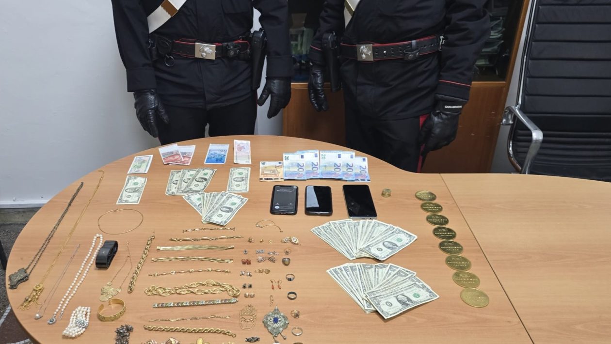 Intuendo immediatamente la natura fraudolenta della telefonata, i Carabinieri hanno invitato l’uomo a proseguire la conversazione per guadagnare tempo e si sono rapidamente portati presso l’abitazione dell’anziana. All’interno dell’appartamento hanno sorpreso il truffatore, che si era presentato come “perito inviato dai Carabinieri” e aveva già raccolto e riposto nel proprio zaino oggetti in oro, valuta estera e gettoni d’oro RAI, per un valore complessivo di circa 150.000 euro.
