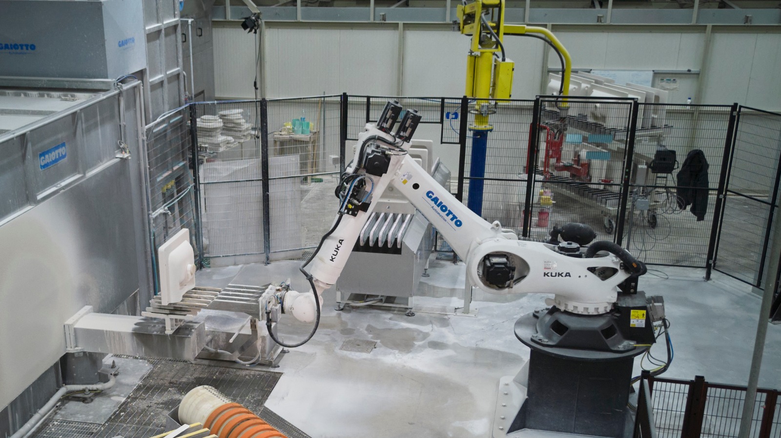 L’integrazione dei robot KUKA all’interno delle linee produttive GSI Ceramica rappresenta uno dei pilastri di questa evoluzione. I sistemi KUKA sono oggi impiegati nelle fasi chiave della produzione ceramica, dalla movimentazione dei pezzi alle operazioni più delicate, dove ripetibilità e affidabilità sono determinanti per la qualità finale del prodotto.