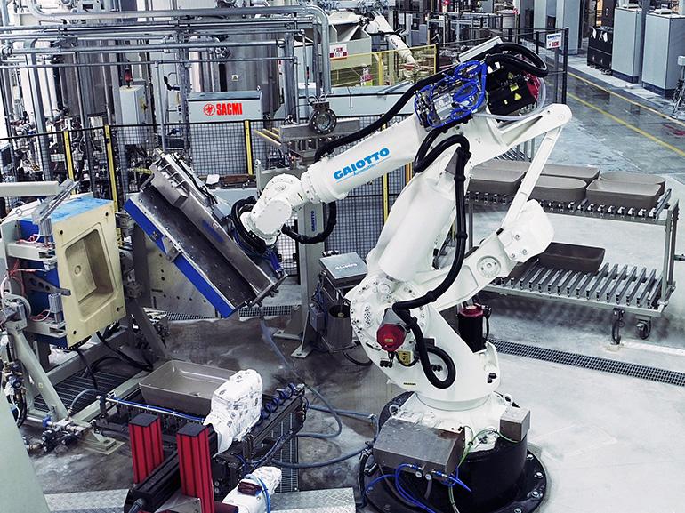 La produzione di sanitari in ceramica richiede un equilibrio costante tra forza, precisione e controllo. La robotizzazione della produzione risponde a queste esigenze con soluzioni progettate per operare in ambienti industriali complessi, garantendo movimenti accurati e costanti anche su cicli produttivi intensivi.