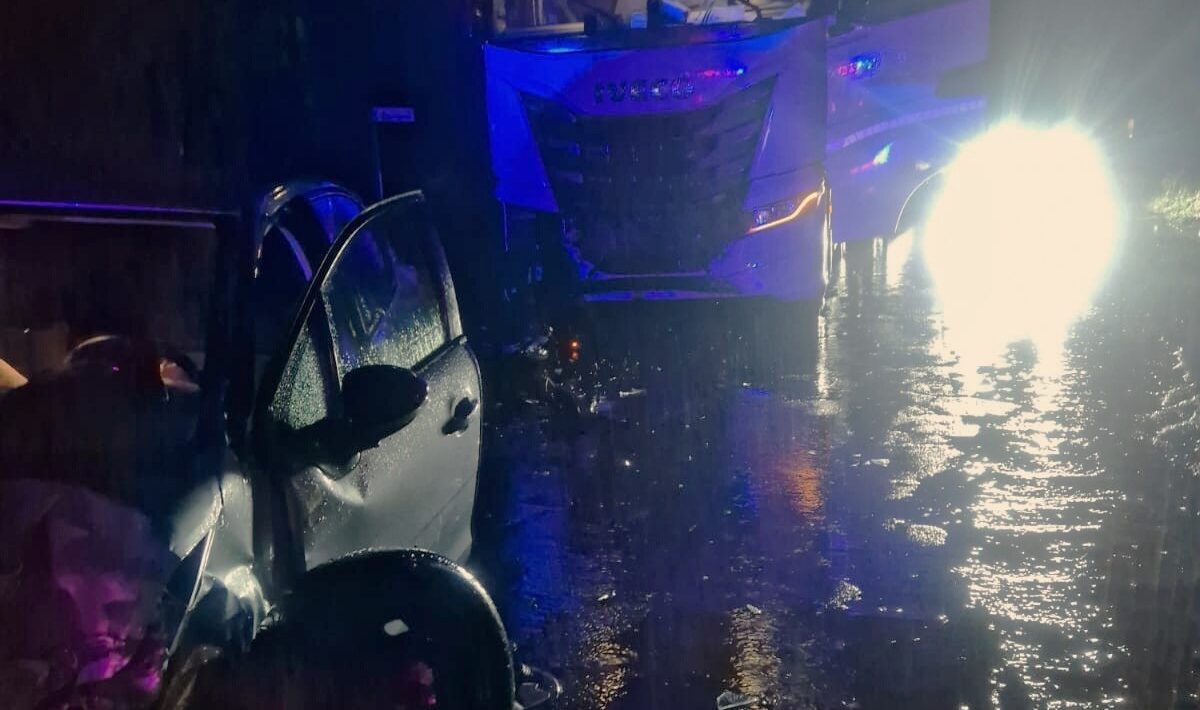 Per dinamiche ancora da accertare, un’auto è stata quasi completamente distrutta da un tir. Un tamponamento particolarmente violento, forse per uno stop non osservato e sul quale stanno indagando gli agenti delle forse dell’ordine per ricostruire con esattezza le dinamiche.