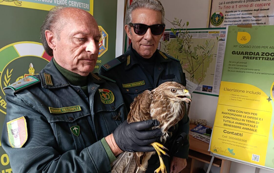 CERVETERI – Un gesto di attenzione e senso civico ha permesso oggi di salvare una Poiana in difficoltà a Cerveteri. L’animale, rinvenuto in un fossato e incapace di volare, è stato segnalato da un cittadino alle Guardie Ecozoofile locali, che sono intervenute tempestivamente.