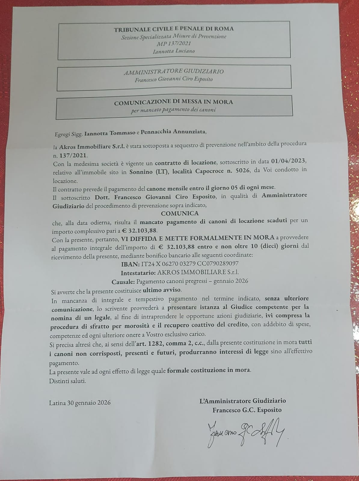 È scandaloso che un processo di tale portata poggi sulle spalle di soggetti pluripregiudicati — estorsori e bancarottieri — che godono dello status di collaboratori e del sostegno economico dello Stato, mentre alle vittime reali viene tolto anche il tetto sopra la testa. Riccardo è arrivato a sostenere che Iannotta fosse il mandante di un’estorsione ai danni di se stesso, smentendo una verità giudiziaria cristallizzata dal dott. Gian Luca Soana, che anni fa riconobbe Iannotta come parte offesa.