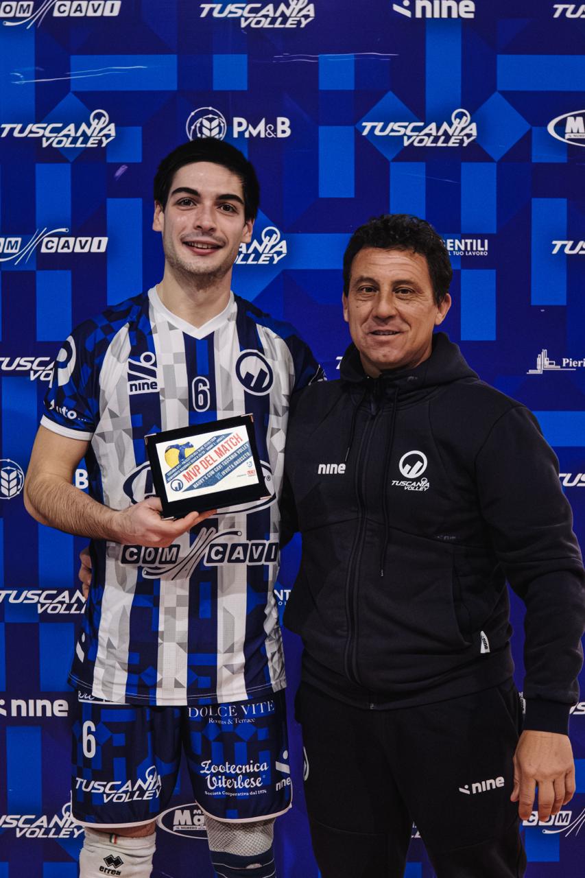 MVP: Lorenzo Ottaviani premiato dal presidente del Tuscania Volley Massimo Pieri.