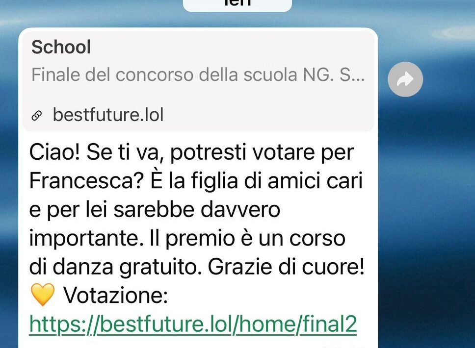 VITERBO – Nuova truffa via whatsapp. Ad inoltrarla un contatto presente nella rubrica, quindi una persona che si conosce, e di cui abbiamo fiducia, soprattutto se chiede di votare per la figlioletta ad una gara di ballo. Un link da aprire e il gioco è fatto.