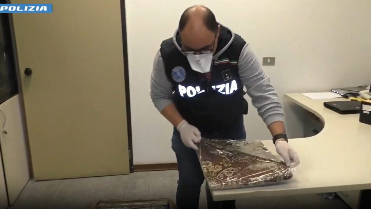 All’interno dei pacchi sono stati trovati numerosi asciugamani e lenzuola, ordinatamente piegati e imbustati. I successivi accertamenti, condotti con il supporto del Gabinetto provinciale di Polizia scientifica, hanno permesso di scoprire che i tessuti erano stati imbevuti di cocaina ed eroina attraverso un particolare procedimento chimico, utilizzato per eludere eventuali controlli durante il trasporto.