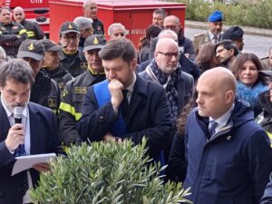 Per l’occasione, il parterre delle autorità era al completo: presenti i vertici locali – dal Prefetto Sergio Pomponio alla sindaca Chiara Frontini – ma soprattutto i vertici nazionali con il Capo del Corpo Eros Mannino e il sottosegretario al Ministero dell’Interno con delega ai Vigili del Fuoco, on. Emanuele Prisco.