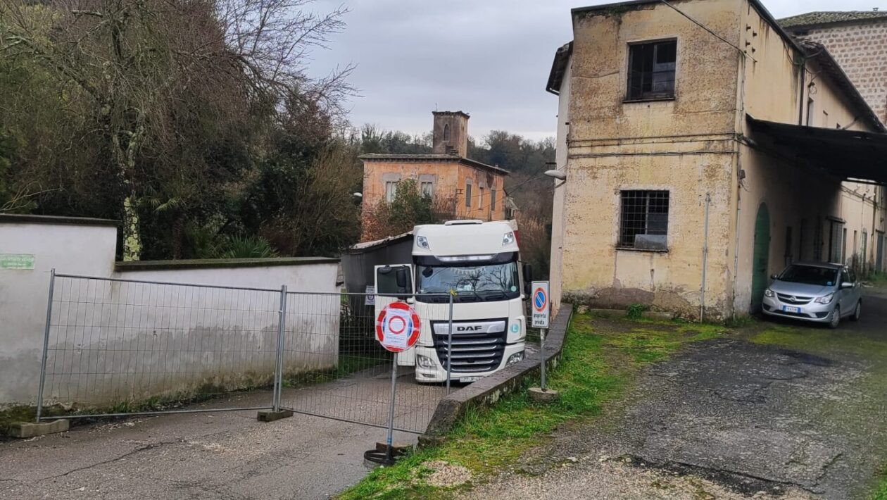 Gallese – Camion incastrato sul ponte di strada Cerreto: accesso completamente chiuso