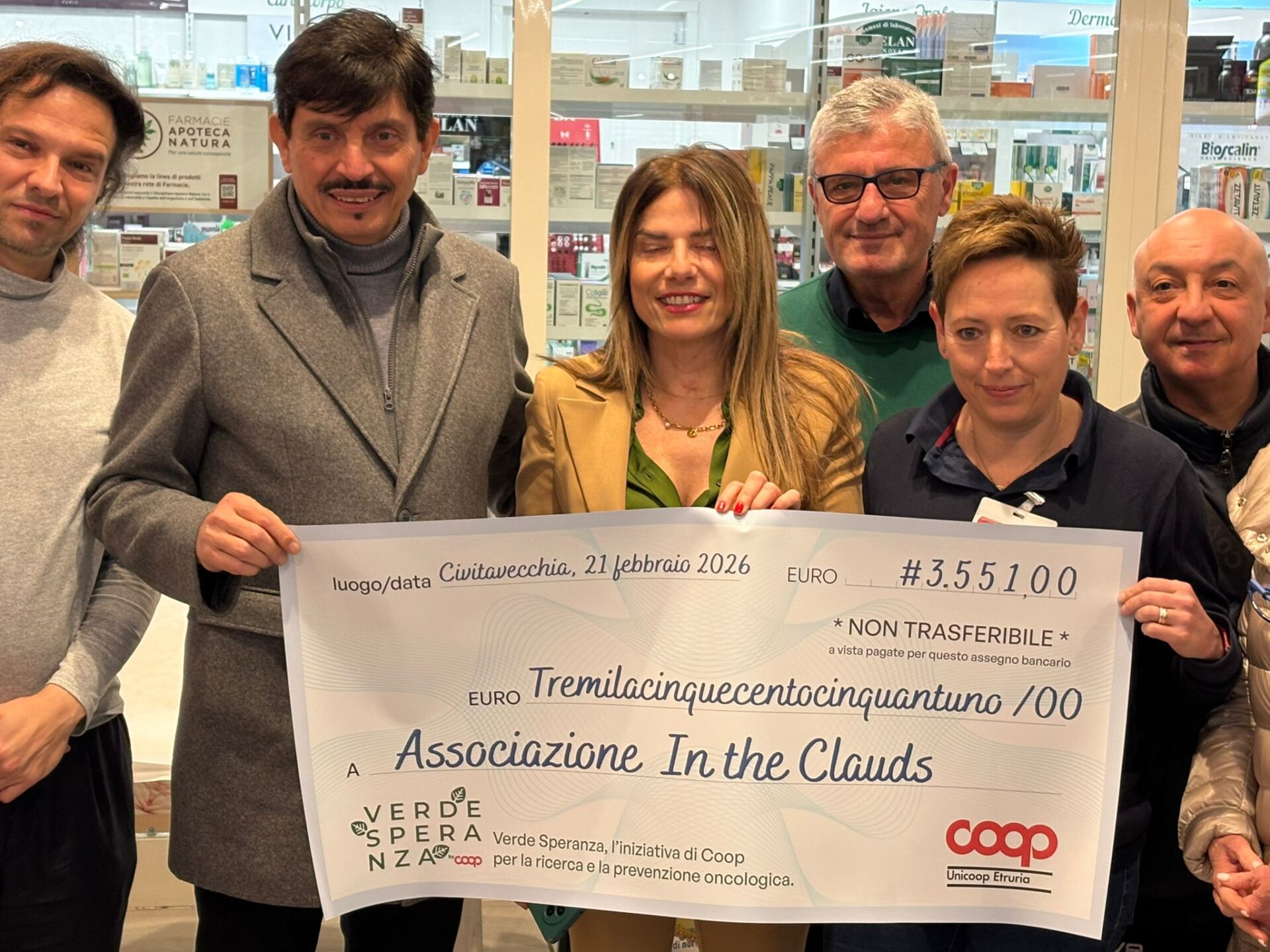 CIVITAVECCHIA – È stata organizzata ieri, sabato 21 febbraio, al supermercato Coop in loc. Boccelle, la donazione simbolica di un assegno della cifra di 3.551 euro all’Associazione “In The Clauds” da parte di Unicoop Etruria.