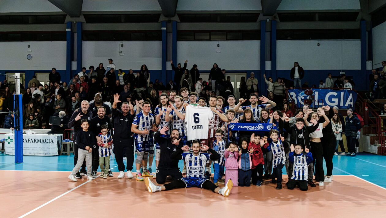 Grazie a questo successo capitan Buzzelli e compagni portano a sei le lunghezze di vantaggio sulla diretta inseguitrice: ora la capolista è a 40 punti contro i 34 dell’Ecosantagata che ora deve guardarsi anche dal Pontedera (33) vincente 3-0 con Grosseto. MVP del match, premiato dal presidente del Tuscania Volley Massimo Pieri, è risultato alla fine il capitano bianco azzurro Pierlorenzo Buzzelli, top scorer del match assieme a Giuseppe Ottaviani autori entrambi di 23 punti.
