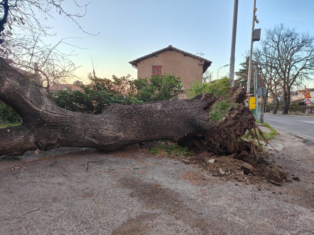 Da tempo il grandissimo albero mostrava cenni di cedimento, tanto si era piegato negli anni che il suo fusto aveva quasi toccato il suolo. Ieri la sfiorata tragedia, con l’albero che è franato addosso a un’auto di pattuglia della polizia locale che sostava nei suoi pressi.