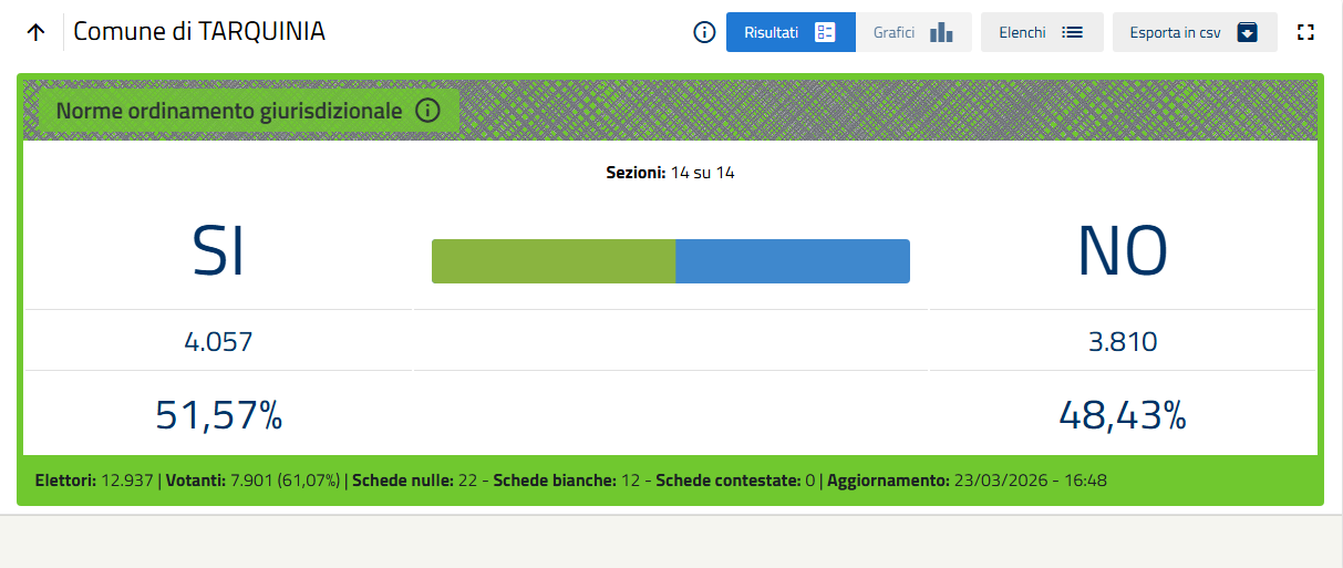 Il risultato del referendum sulla giustizia è il capolavoro (al contrario) del Partito Democratico locale e della coalizione di centrosinistra. Mentre in tutta Italia il “No” festeggia una vittoria schiacciante, a Tarquinia si consuma un caso unico nazionale: il “Sì” vince, seppur di misura, infliggendo a Sposetti una batosta politica senza precedenti.