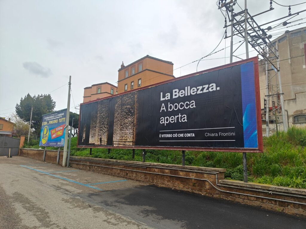 VITERBO – In città la campagna elettorale sembra già iniziata, anche se ufficialmente manca ancora un anno alle comunali. A dirlo non sono dichiarazioni politiche, ma i nuovi cartelloni comparsi in città, da viale Raniero Capocci ad altre zone, che mettono al centro un messaggio chiaro: il nome della sindaca Chiara Frontini.