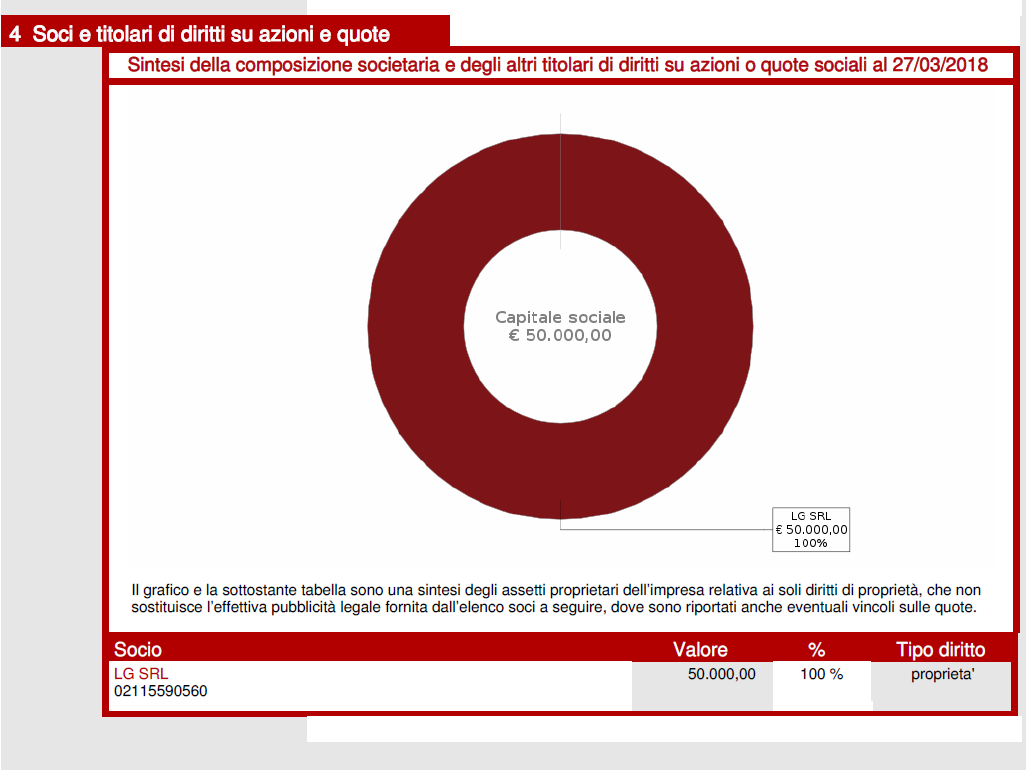 Scavando nella visura storica, emergono i passaggi di mano delle quote sociali. La SL Costruzioni è legata alla LG S.R.L. che detiene il 100% delle quote.