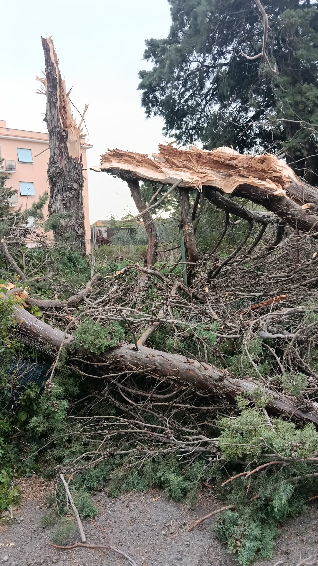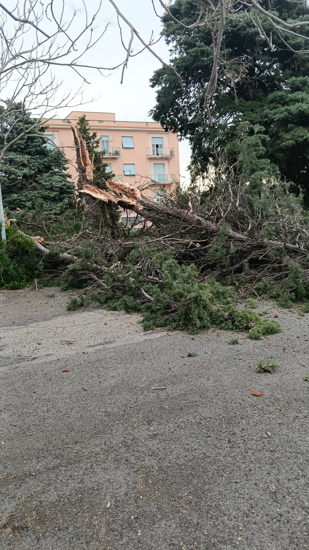 Nel capoluogo, il vento ha provocato la caduta di diversi alberi. Tra gli episodi più recenti, quello avvenuto nella zona del Salamaro, dove un albero di grosse dimensioni è crollato nei pressi della chiesa della Sacra Famiglia, finendo su alcune auto in sosta.