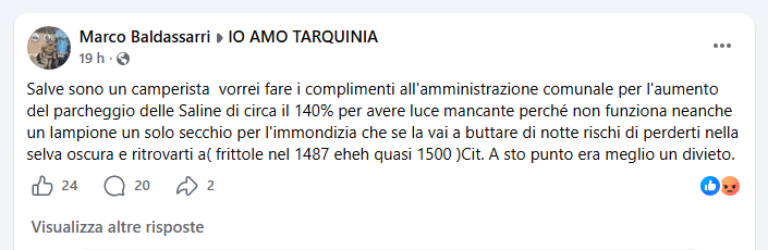 C’è chi scrive “Purtroppo a Tarquinia non sono ancora aperti al turismo” e chi commenta: “Purtroppo l’amministrazione comunale ha altri obiettivi e del lido se ne frega totalmente mette solo tasse e divieti. Da schifo proprio”.