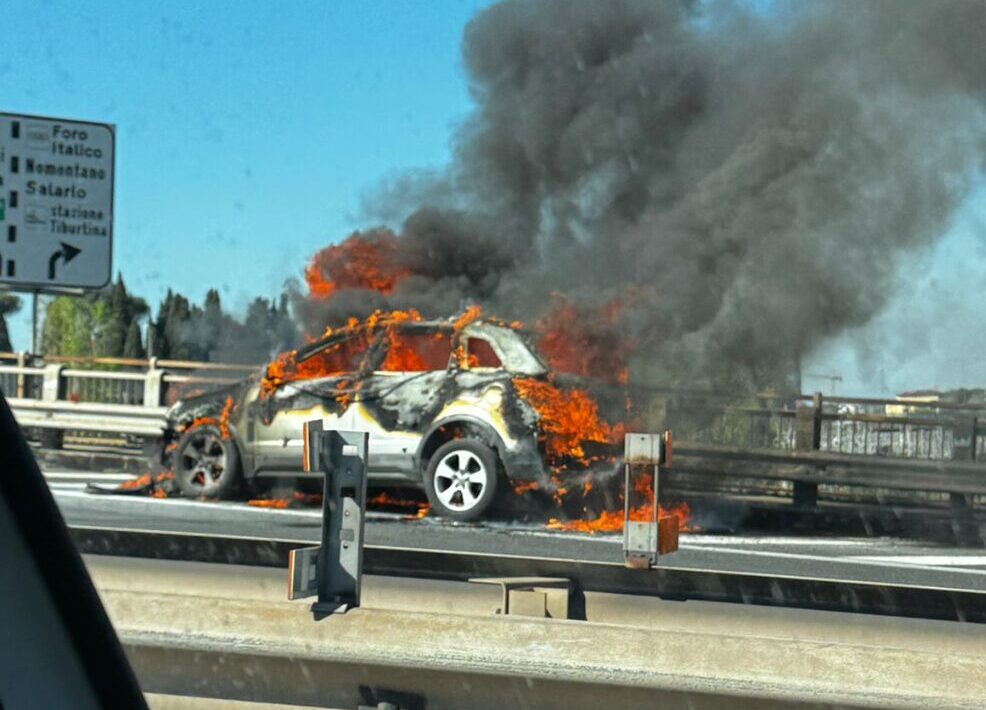ROMA – Paura nel pomeriggio di oggi, martedì 7 aprile, sulla Tangenziale Est di Roma, dove un’automobile ha preso fuoco causando pesanti disagi alla circolazione. L’episodio si è verificato in direzione sud, nei pressi del nodo tra Cimitero del Verano e San Giovanni, generando lunghe code e traffico quasi completamente bloccato.