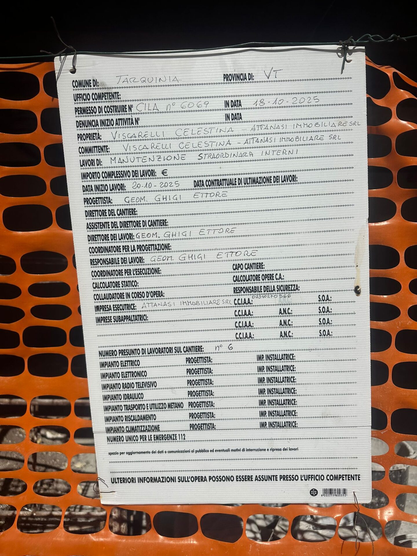 Sul cartello affisso all’esterno, la Attanasi Immobiliare Srl dichiara di operare tramite una CILA (Comunicazione di Inizio Lavori Asseverata), a firma del geometra Ettore Ghigi (comunicazione numero 6069 del 18-10-2025). Qui sorge il primo, pesantissimo sospetto.