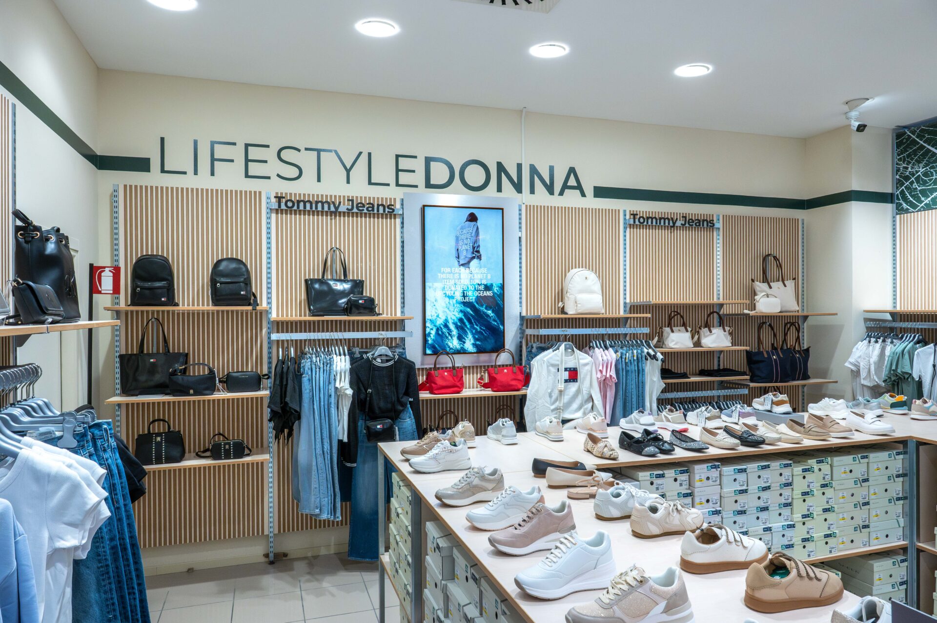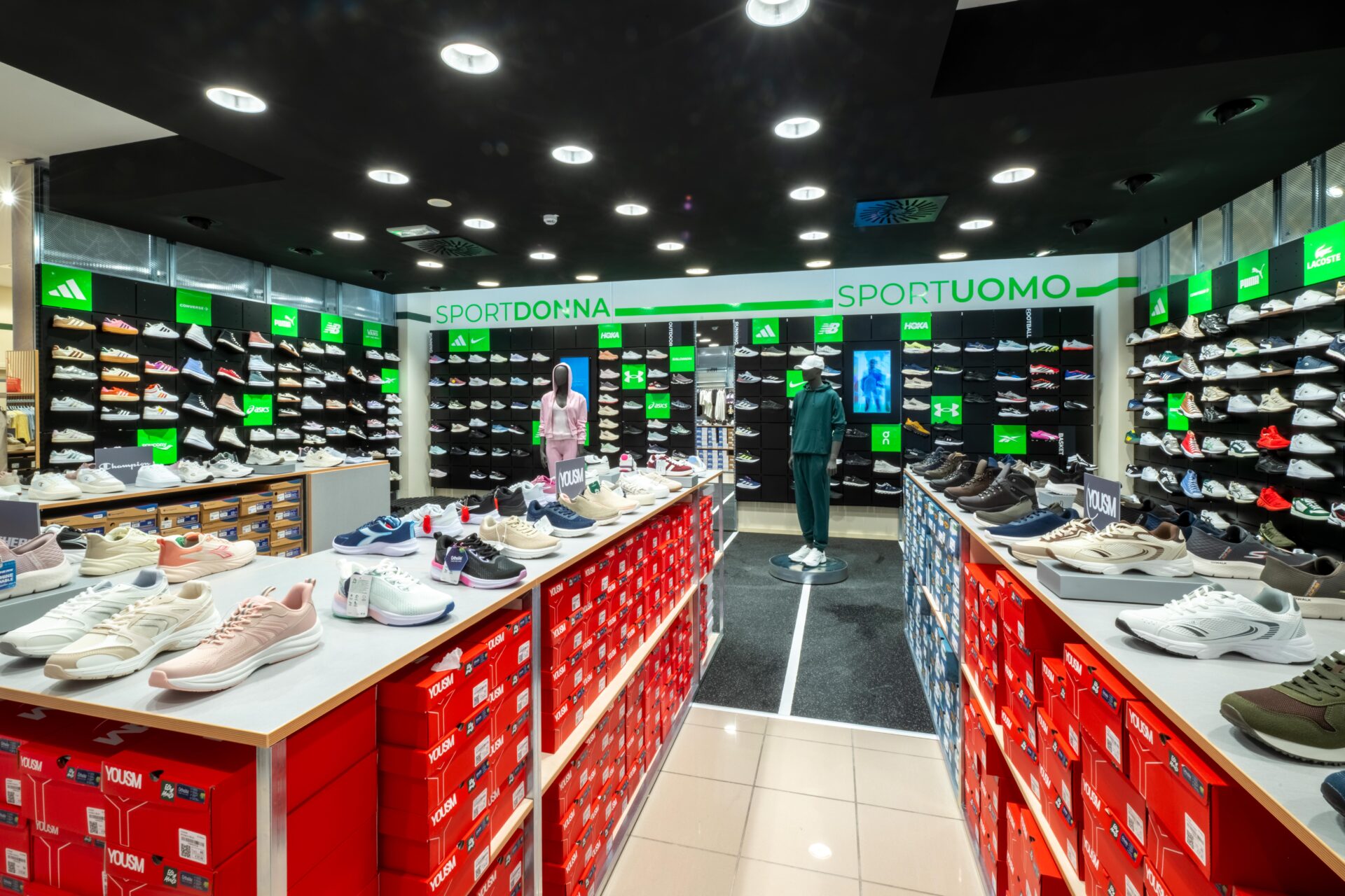 L’ambiente è dinamico e flessibile, pronto a rinnovarsi con le stagioni e con le proposte di collezione, che spaziano dall’uomo alla donna e al bambino, fino a un vasto assortimento dedicato al mondo dello sport, con una nuova area immersiva arricchita da uno shoewall che invita a scoprire ogni modello nel dettaglio.
